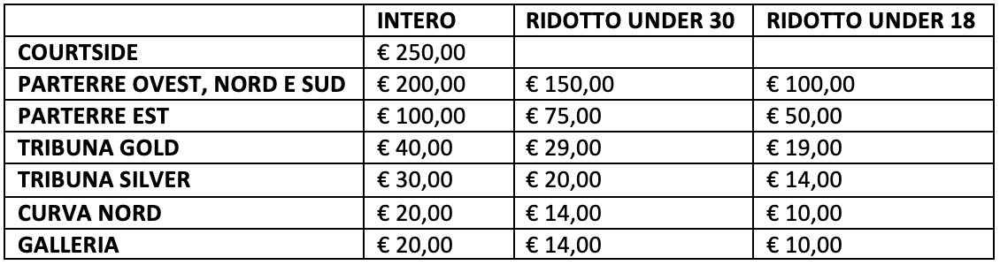 *Per l’acquisto online sono previste spese di commissione. Per info biglietteria@pallacanestrovarese.it.