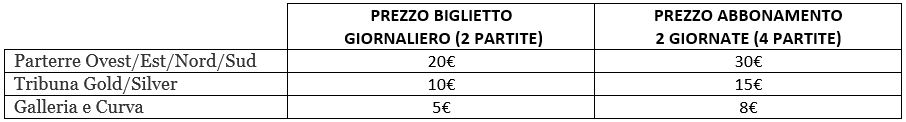 I tagliandi del "Trofeo dei Consorzi" saranno disponibili anche online dalle ore 17 di martedì 30 agosto CLICCANDO QUI. Il tifoso potrà sottoscrivere un biglietto giornaliero oppure un mini-abbonamento valido per le due giornate. Non c’è prelazione sul posto, né per il biglietto della singola giornata né per l’abbonamento delle due giornate. Il posto è a vendita libera.