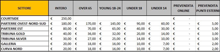 Il giorno della partita le biglietterie dell’Enerxenia Arena apriranno alle ore 19:00.