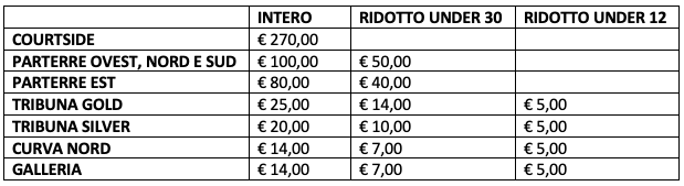 I biglietti si potranno acquistare ONLINE oppure presso la biglietteria n°2 della Enerxenia Arena con i seguenti orari: