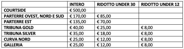 Il giorno della partita le biglietterie rimarranno chiuse.